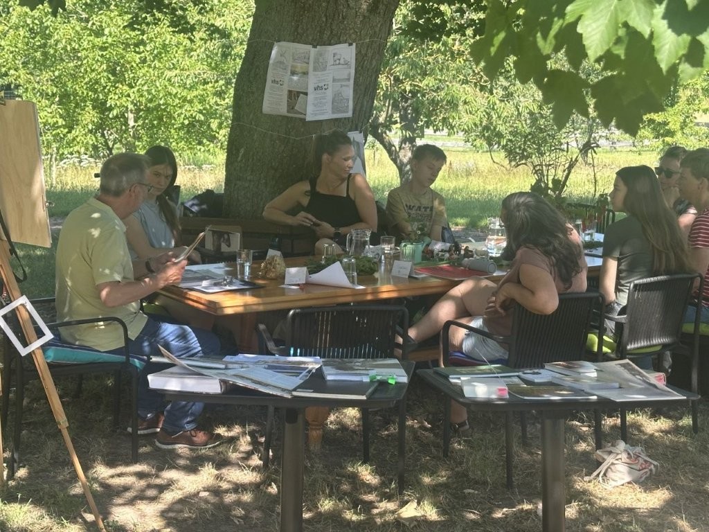 „Dörfer, Wiesen, Weiden, Felder und Wälder“ – so lautete der Titel des Zeichenworkshops, erstmalig bei besten Wetter im neuen Lernort der VHS-Güstrow auf dem Gutshof Roggow stattfand. Unter der Leitung von Volker Wirth kam eine engagierte und kreative Gruppe zusammen, um sich zeichnerisch mit dem Leben auf dem Land auseinanderzusetzen.