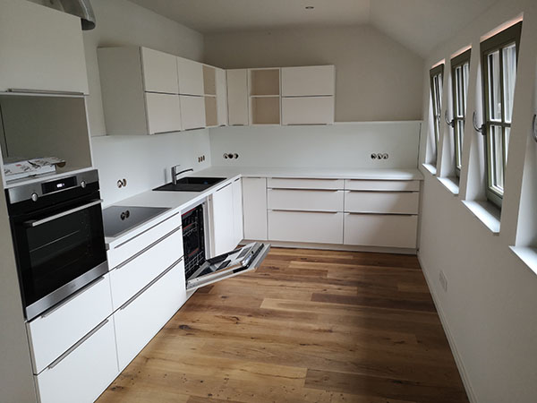 Wir haben das alte Gutshaus vollständig entkernt, wobei wir darauf geachtet haben, alles Erhaltenswerte und historisch Wertvolle so gut es geht zu erhalten und in einem neuen Glanz erstrahlen zu lassen. Tradition ist auch hier das Fundament für Moderne. Hier ist ein attraktives Wohnangebot entstanden. Alle Wohnungen sind modern und auf Premium-Niveau ausgestattet, barrierefrei und energie-effizient. Natürlich ist das Haus nach den modernsten Energie-Standards gebaut. Die große Photovoltaik-Anlage auf dem Dach macht das Gebäude Energie-autark. Das heißt, wir produzieren unseren eigenen Strom für die Elektrizität und zum Heizen und zum Tanken…